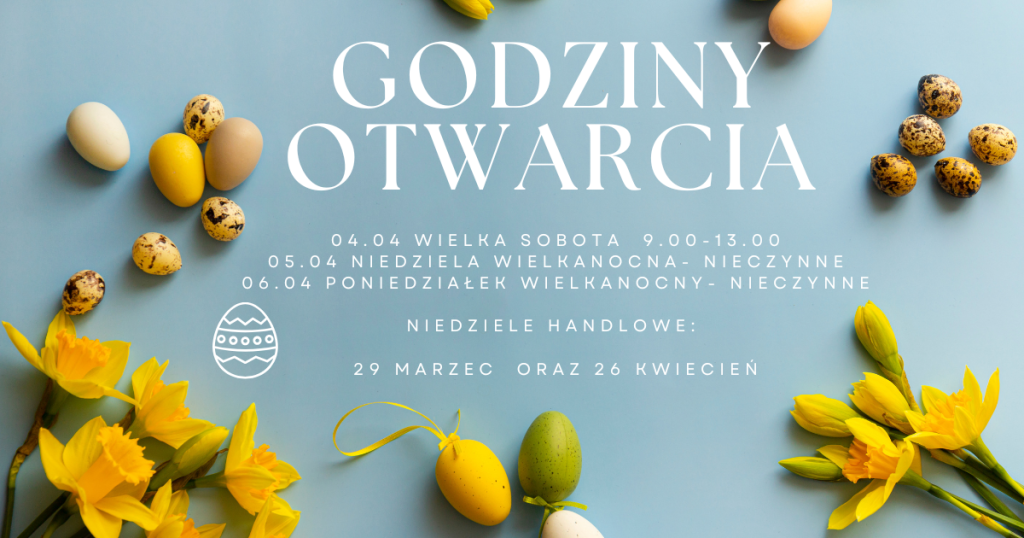 Sprawdź godziny otwarcia Galerii Myślenice w Wielkanoc oraz niedziele handlowe w marcu i kwietniu – znajdziesz je na grafice 👇